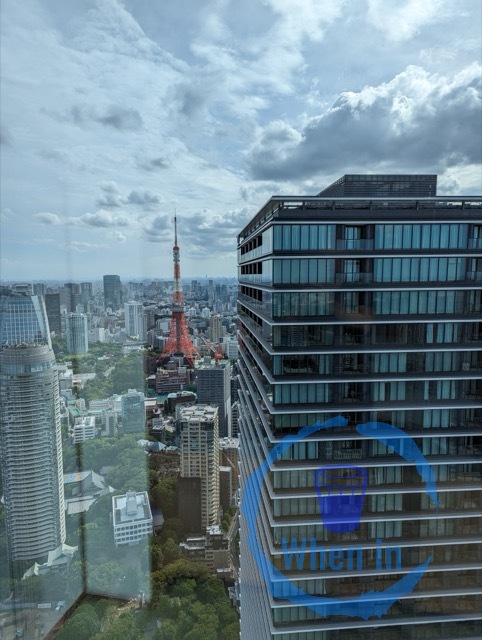 Upon arriving at Haneda airport around 1:30 in the afternoon, it took us about 45 minutes and a few trains to get to the hotel. Upon arriving at the train station near the hotel (more on this later), we took the underground tunnel to the building and then took an elevator to the 51st floor, where the main lobby and check in area are located. We were, thankfully, able to check right into our room. Our check in experience, while perfectly fine, seemed to miss the perks of a welcome drink that others have reported. That said, we were quickly checked in and taken up to the room. We had a lovely view of Tokyo Tower from our room.