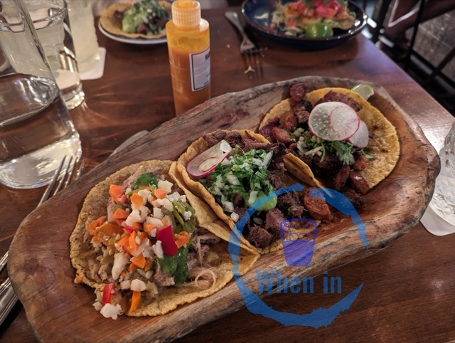 We’ve been to Gracia for brunch, lunch, and dinner. The salsa sampler is a great start to any meal and let’s you try three of their different homemade salsas along with their delicious tortilla chips. While Sam is partial to the tostada, I rarely order anything but the tacos. Beef tongue, or lengua, isn’t on every menu and tongue on their lengua tacos is some of the most tender and delicious I’ve ever had. The pescado taco has a nice balance of crispiness and tangy sauce that always keeps it on the list if I’m looking for more than lengua. More often than not I’ll get two tacos (lengua and pescado) though they have a pork belly special taco that is worth trying. Additionally, their house margarita is always delicious. A normal meal for us is the salsa sampler, a couple or few tacos each, and a few of the house margaritas.